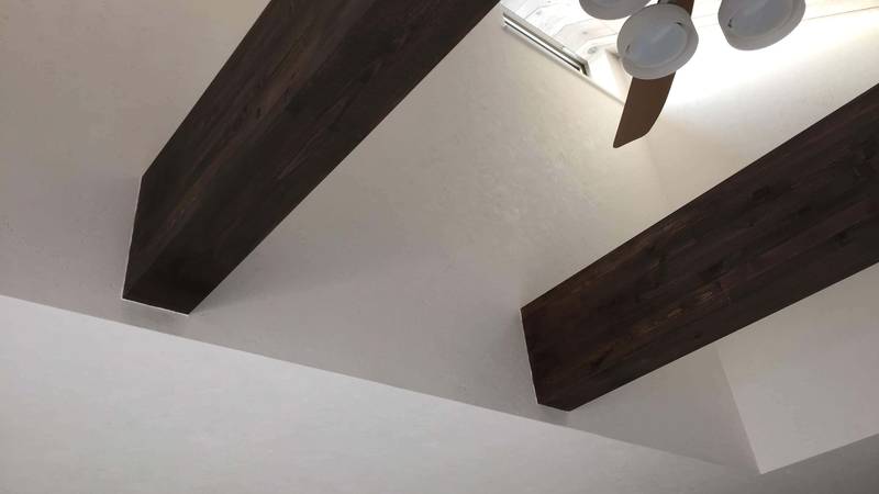 【補修前の状況】リビングの天井の柱に塗りムラがある【場所】リビングの天井【材料】木材【色】ブラウン