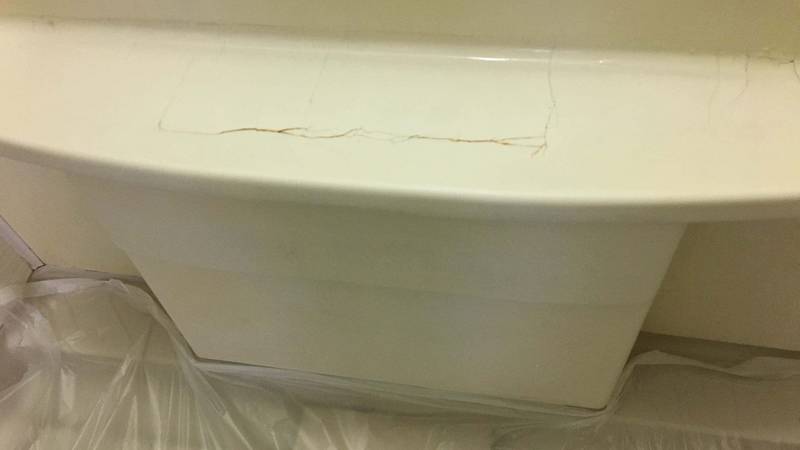 浴室の樹脂製の棚のひび割れの補修と塗装