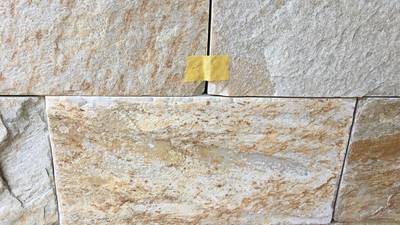 | 外壁化粧ブロックの角にできた複数の欠けを補修しました。高耐久パテで元の形状を復元した後、周囲の石材調の模様やザラザラした質感を塗装で丁寧に再現。どこを直したか分からないほど自然に仕上げ、外観の美しさを取り戻しました。 |